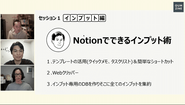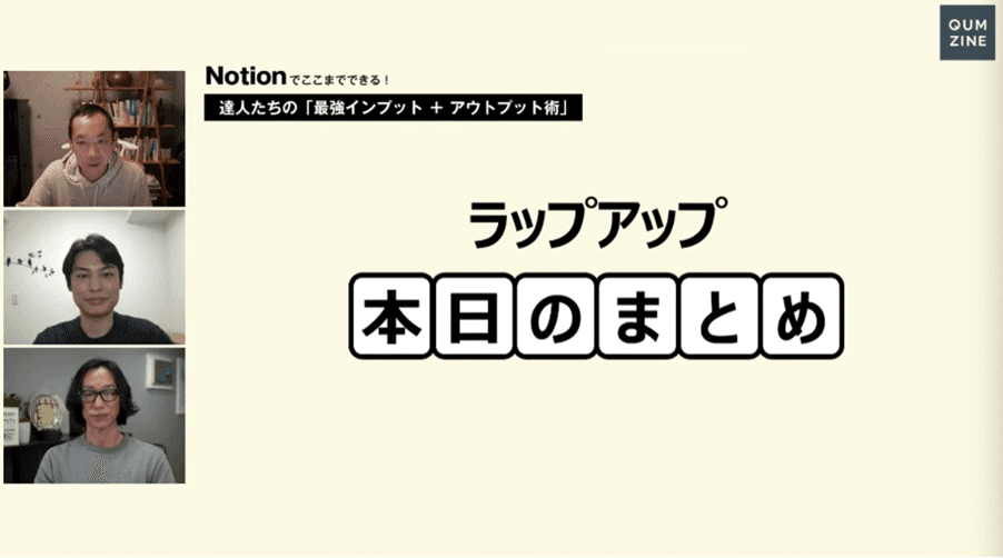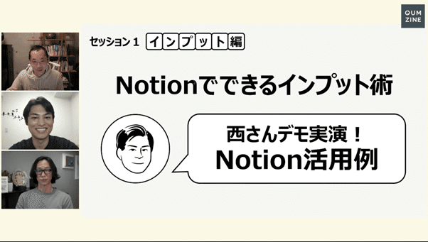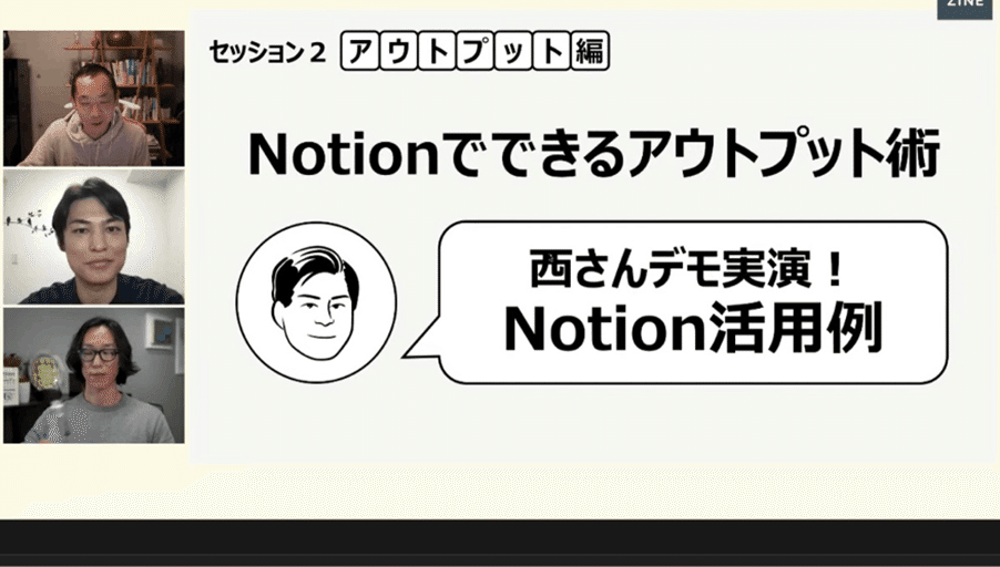 角:今日は村上さん、西さんにお越しいただきました!情報管理に特化したNotionを使う中で、良いインプットを増やしてどうアウトプットをするのかという学びがあったのではないかなと思います。