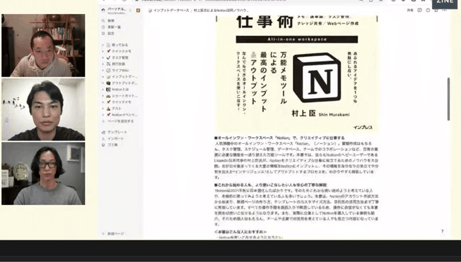 村上:かなり初期からNotion使っていて、中の人と「なんでもできるけど使いにくいよね」という話をしていて「じゃあ本を書けばいいんじゃない?」ということで書いたのがこの本です。今日はよろしくおねがいします!
