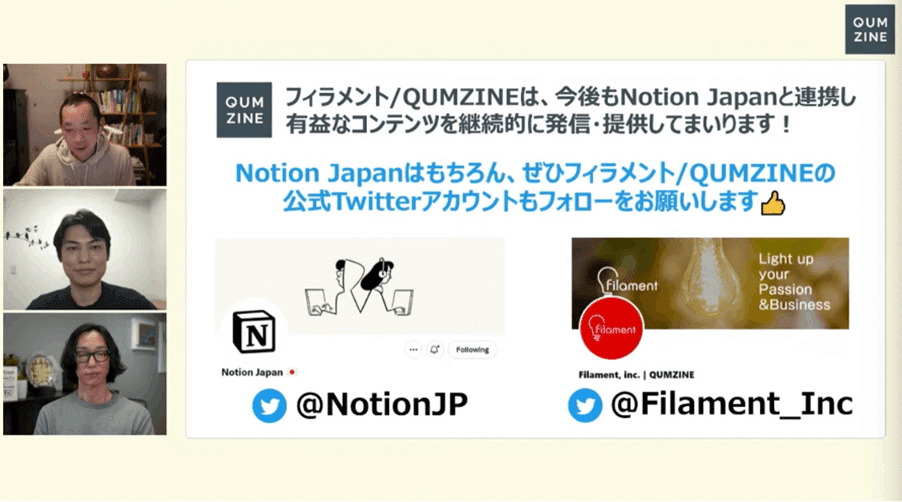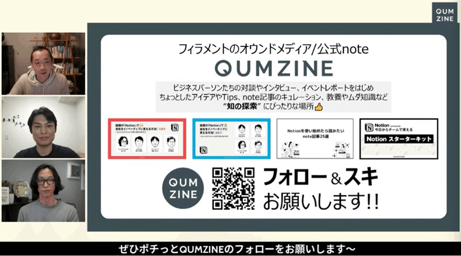 角:ついでにQUMZINEというメディア、そして現在のYouTubeチャンネルもよろしくおねがいします。Notionフィラメント、両方のTwitterもよろしくおねがいします!