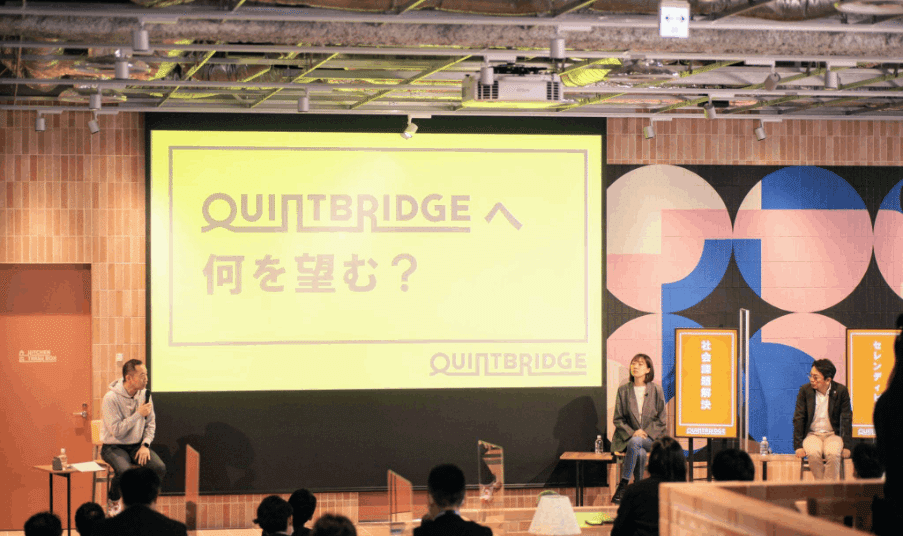 私が回答した「社会課題解決」ってちょっとずつ表層的な言葉になってきてしまったなという感覚があるんです。そんな中で、これだけいろんな方が思いを寄せてつくられたQUINTBRIDGEが、本質的な「社会課題解決」につながるのをすごく期待したいんです。もう皆さん標榜しているのは存じ上げているんですけど、それでもあえて書いたのは、やっぱりこれだけ大きなリソースで、これだけいろんな方の思いが詰まっているんだったら、本質的な社会課題解決にちゃんと向き合って追求していきたいし、それを一緒にやっていけたらいいなと思っています。