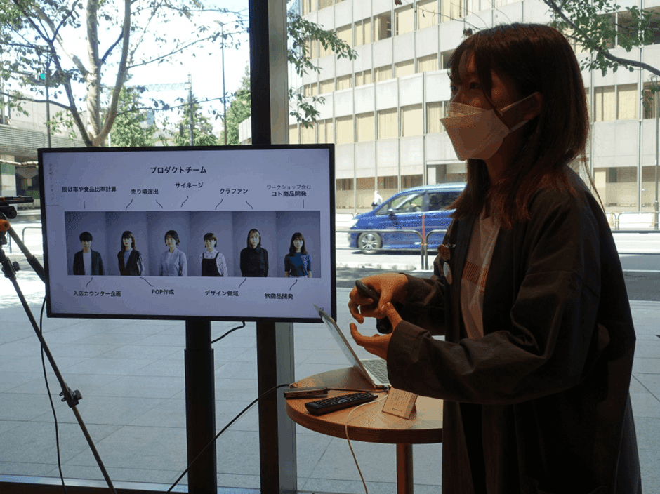 内覧会では、このプロジェクトに参加している学生から直接店舗の説明を聞くことができました。