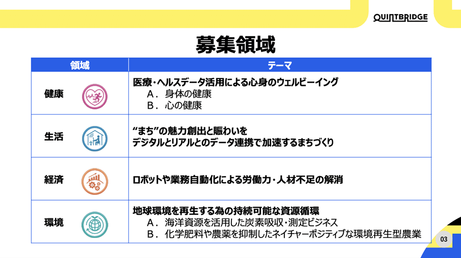 小林:QUINTBRIDGEにとっても今回のプログラムにとってもポイントは「共創」なので、我々が持っていないものを持っているスタートアップや研究機関の方々にぜひ来ていただきたいというのが強い思いです。
