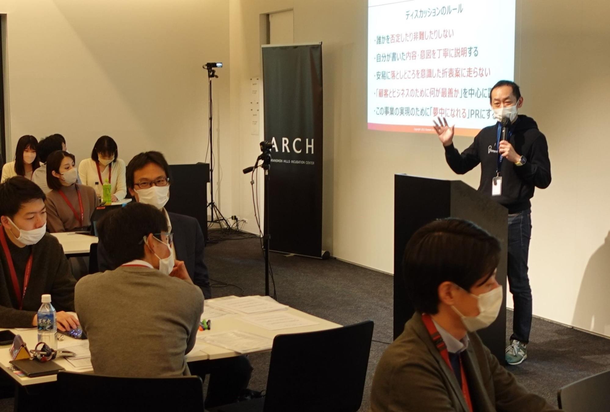 そして、今回のキックオフのメインイベントとなるワークショップに続きます。「A4一枚でアイデアを磨く提案力強化ワークショップ」は、Amazon内部でも用いられる、プレスリリースを模したドキュメントを作成するワークショップです。