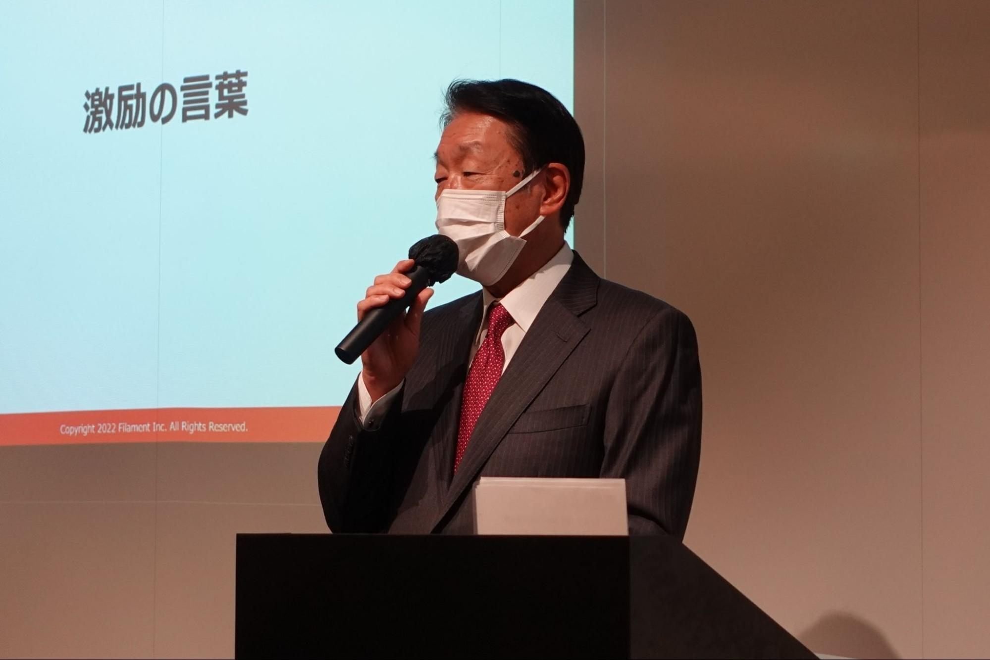 最後に、激務の合間を縫ってサプライズで会場に駆けつけられた商工中金の関根社長から参加者へ激励の言葉をいただきました。
