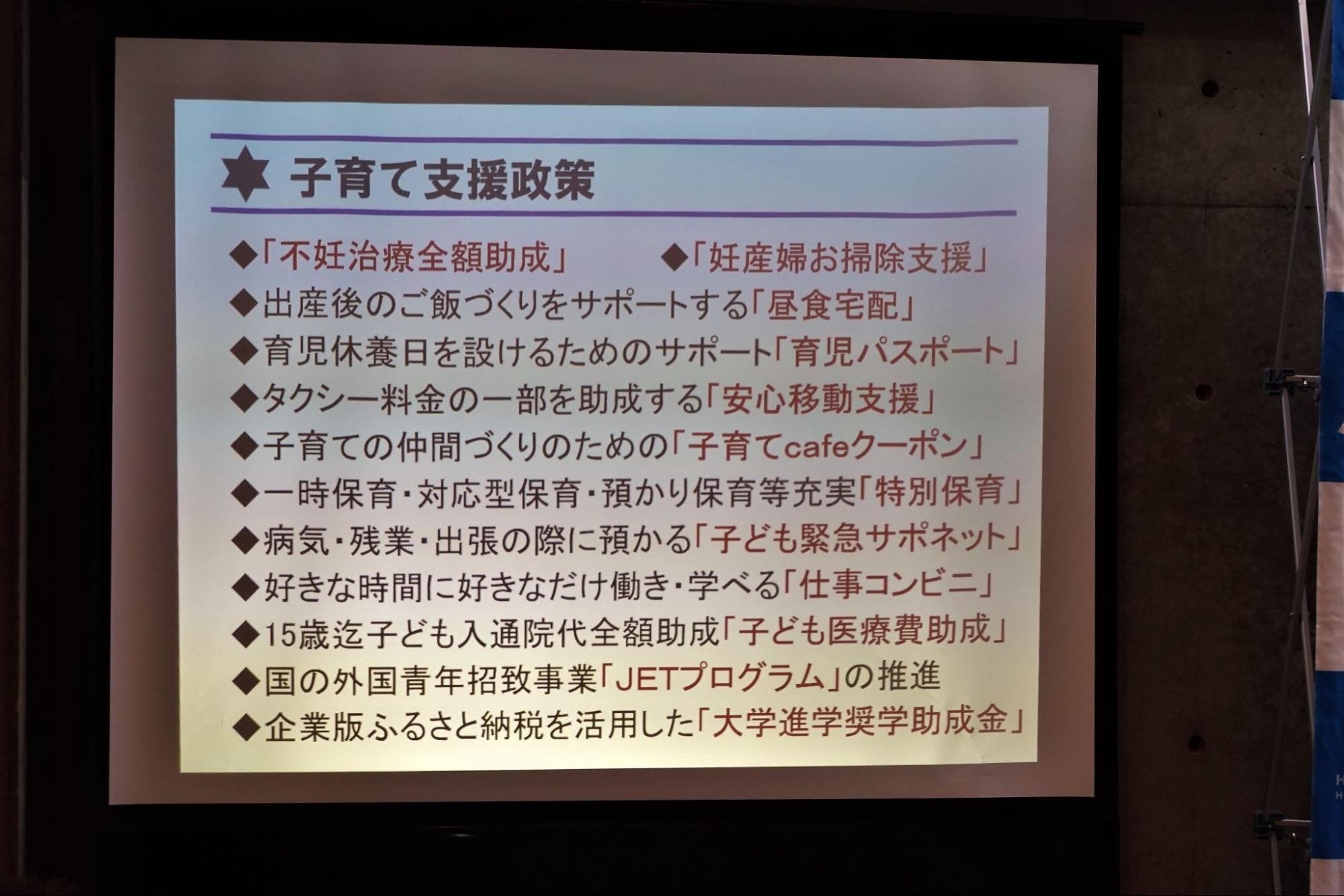 まず、子育て支援政策として、誰もが安心して出産・子育てができるよう、妊娠期からお子さんが大学生になるまで切れ目のない政策が展開されています。