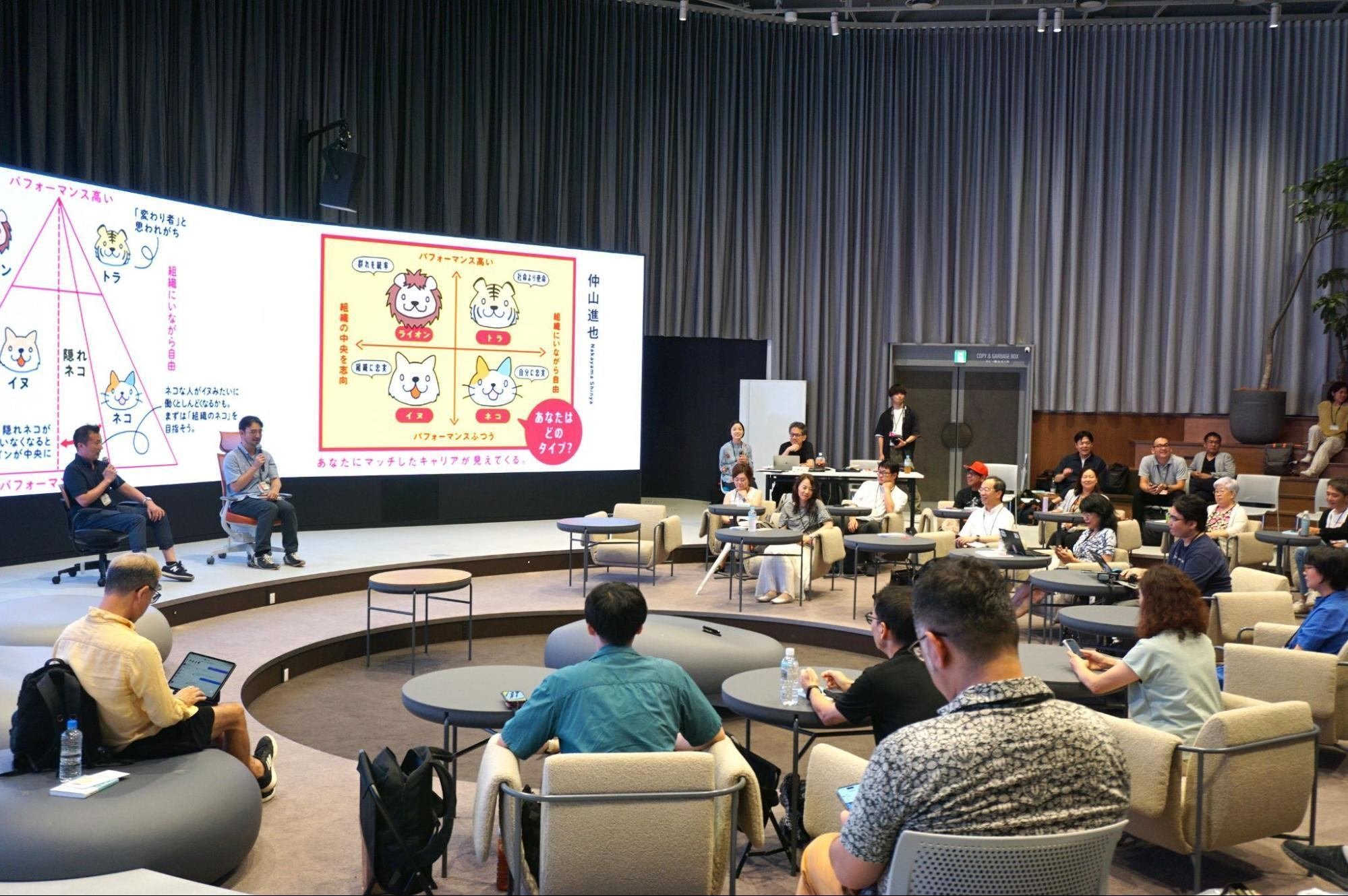 楽天大学学長の仲山進也さん(通称:がくちょ)の著書『「組織のネコ」という働き方 「組織のイヌ」に違和感がある人のための、成果を出し続けるヒント』によれば、組織で働く人は、組織に忠実な「イヌ」、自分に忠実な「ネコ」、ネコの進化系である「トラ」、群れを統率する「ライオン」の4種類の動物に例えられる。そして、本来「ネコ」な人が「イヌ」のように働くとしんどくなるので、まずは「イヌの皮をかぶったネコ」は皮を脱いでネコを目指すことを提案しています。このたび、この書籍に共感した「ネコ」や「トラ」たち80人が「組織のネコカンファレンス」と題して集結しました。自由な場で生き生きとするネコたちは、いったいどんな時間を過ごしたのでしょうか。(文/永井公成、写真/株式会社UNISON HYBRID 代表取締役 西舘聖哉氏、永井公成、平井征輝)