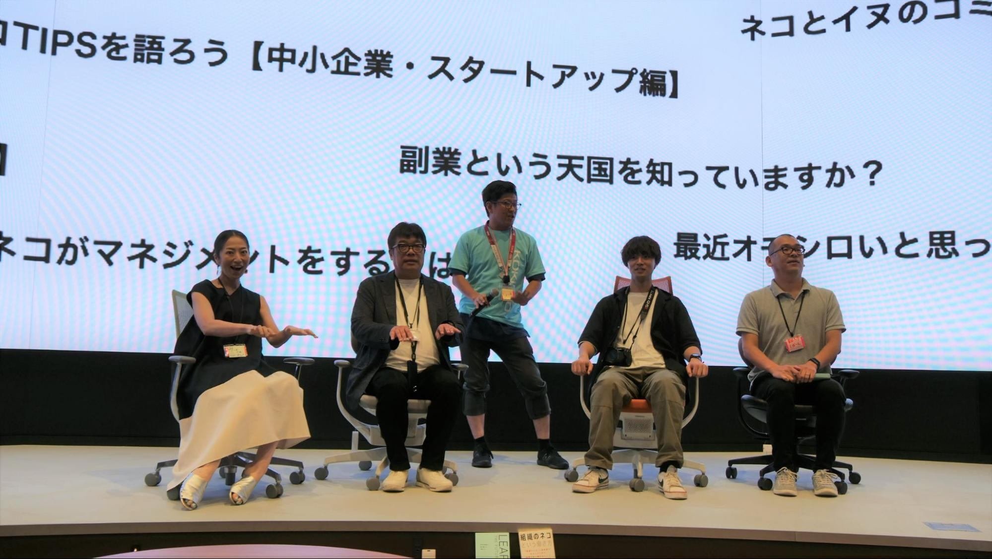その後、2023年2月22日に1周年を迎えるタイミングでコロナ禍が収束してきたことから、遂に初のリアルイベントを実施。オンラインではすでに何回も顔を合わせているけど、リアル初対面ということで、とても盛り上がったといいます。その勢いで、「皆で何かイベントをやってみましょうか」という流れになり、今回の『組織のネコカンファレンス』の開催へと繋がりました。