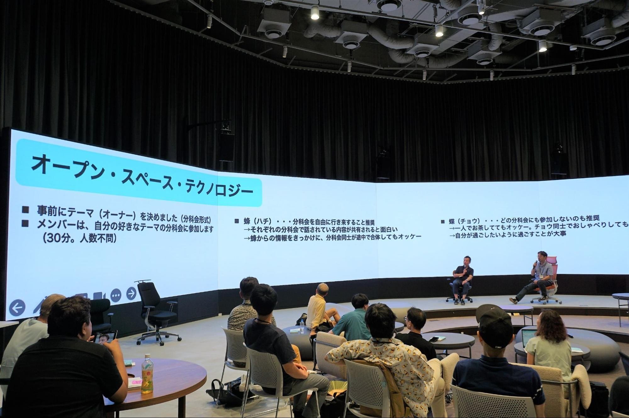 今回のメインイベントは、「オープン・スペース・テクノロジー」をアレンジした進行。分科会形式で、事前にトークテーマのオーナーを決め、参加者は自分の好きなテーマの分科会に移動します。