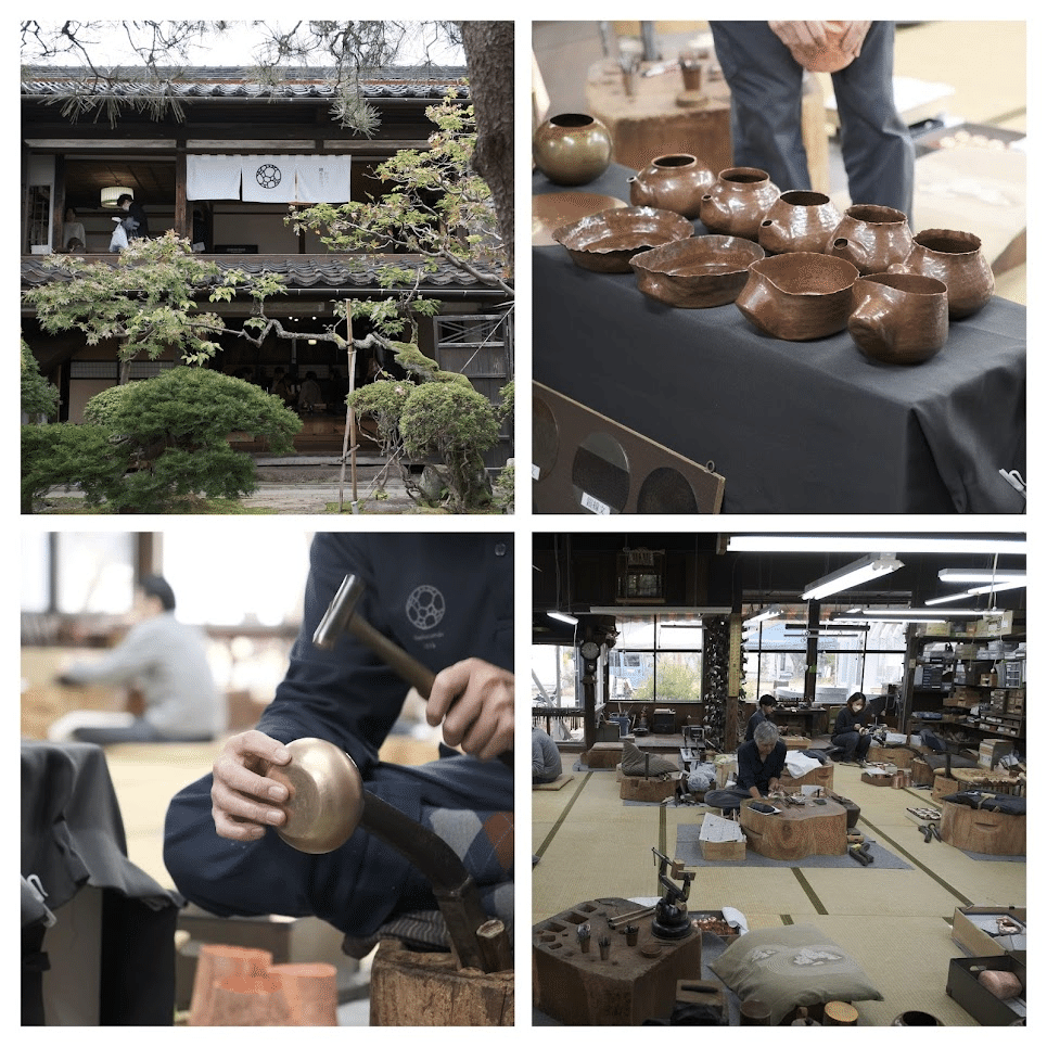 特設展示でも注目されている玉川堂さんでは、一枚の銅板から美しい急須が生まれるプロセスに息を呑みました。ちょうど先日のブラタモリでは弥彦山の銅鉱との歴史的な関係も説明され、その「なぜここで銅器?」という疑問が一気に解消されたところ。若い職人さんもいるけど、やって見せることで図面なしで作り上げるのをおぼえていくそう。価格を見るとバグってる?となるけど、その工程を見て納得。でも買えない…。