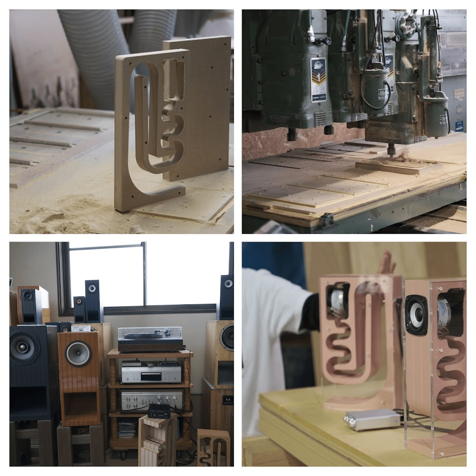 ハイクオリティなバックロードホーンスピーカーの製造販売でそのスジでは有名なハセヒロオーディオの「長谷弘工業」さん。MDF材の切削加工で、小さな箱から豊かな低音が生まれます。ここでは視聴ルームも完備。帰りが飛行機じゃなければ買いそうでした。