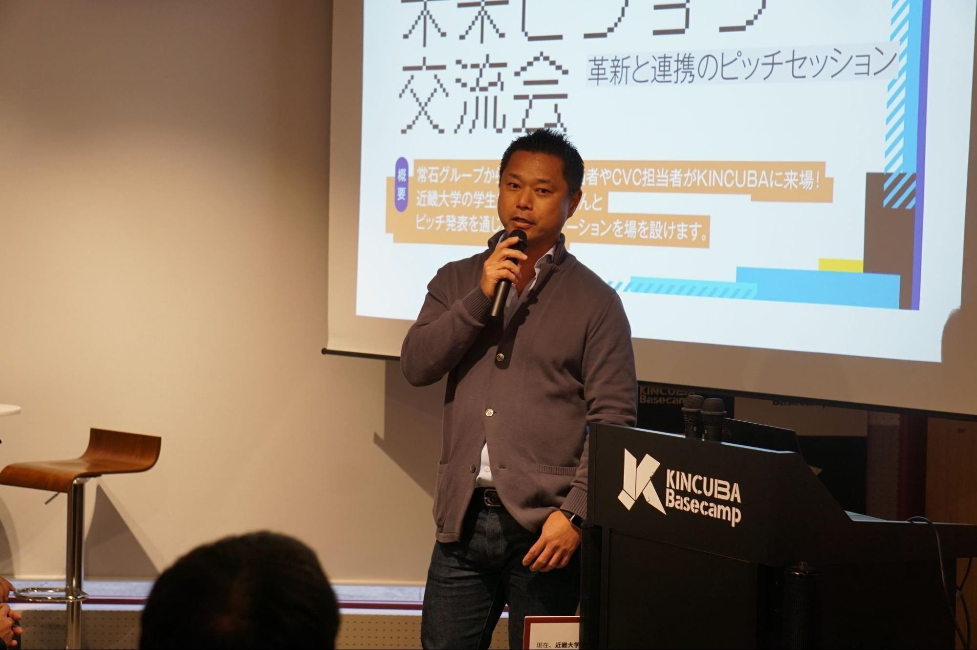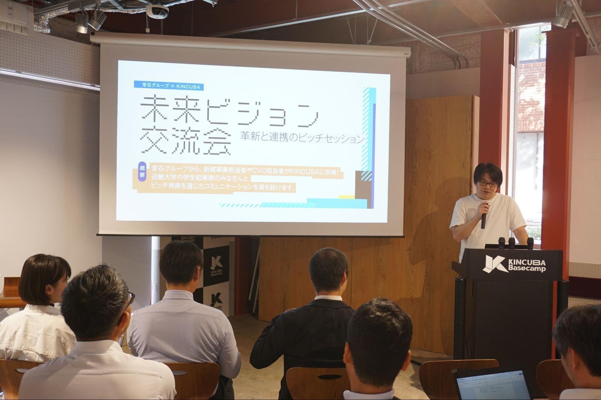 2023年10月12日、近畿大学が運営するインキュベーション施設KINCUBA Basecampにて「未来ビジョン交流会〜革新と連携のピッチセッション〜」が開催されました。未来ビジョン交流会では造船・海運・環境・エネルギー・ライフ&リゾート事業を展開する常石グループの新規事業担当者やCVC担当者と、近畿大学の学生起業家のみなさんがピッチ発表を通じた交流を行いました。