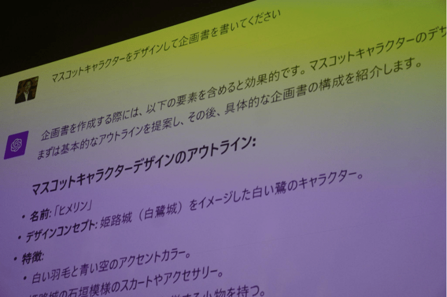 角:私も行政に20年間携わってきましたが、行政の言葉で言う「文書主義」なる言葉があります。ドキュメントとして色々な情報が長年蓄積されてきているということですね。 それをChatGPTに学ばせることで未来を作る手助けをさせるというのが良い活用方法ではないかと感じました。