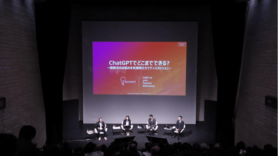 ChatGPTを文書業務や簡単な質問の回答だけではなく、実際に私たちが直面している課題を解決する力になってもらうにはどうすればよいか?パネルディスカッションでは、姫路市が抱えている課題の解決方法やChatGPT活用について、姫路市 政策局長である井上泰利氏、そしてデジタルハリウッド大学 教授である橋本大也氏、一般社団法人Code for Japan Govtech推進コンサルタントである石塚清香氏が登壇し、モデレーターである株式会社フィラメント 代表取締役CEO 角勝とともにChatGPTでどこまでできるかを探っていきます。(文/QUMZINE編集部・土肥紗綾)