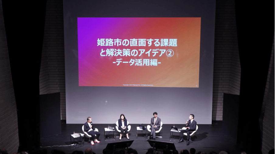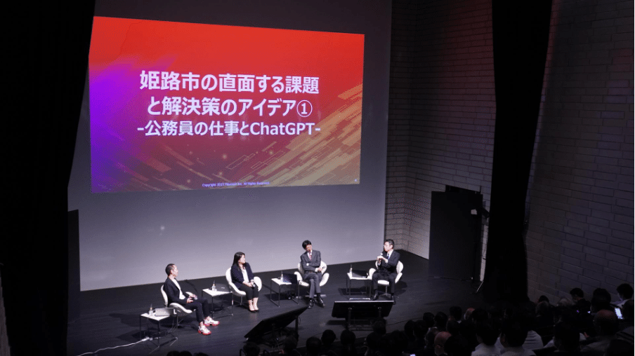 ここまでChatGPTの利用の実演から、自治体での事例まで盛りだくさんでしたが、今回の本題はここから!姫路市が直面している課題と解決策についてパネルディスカッションをおこなっていきます。