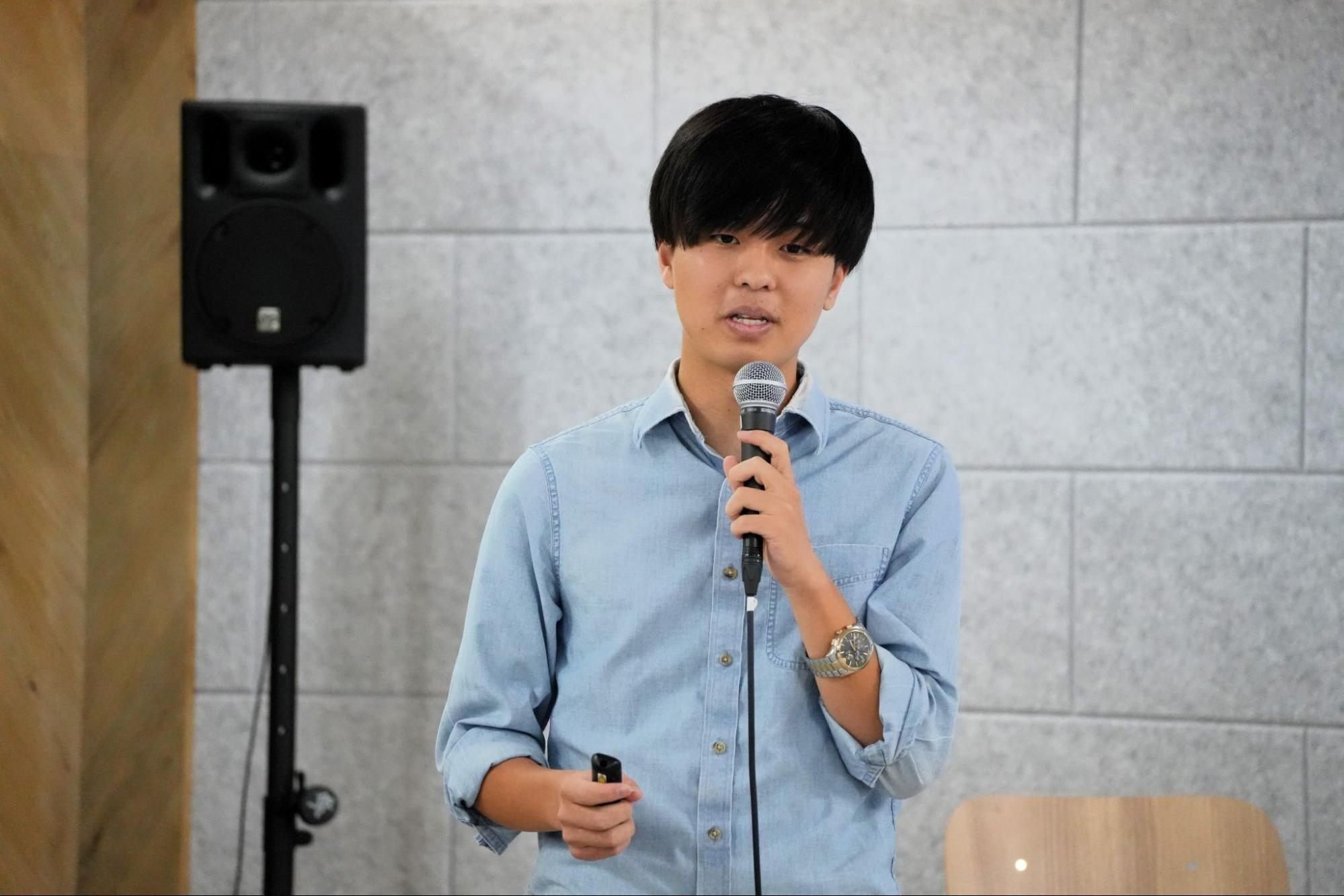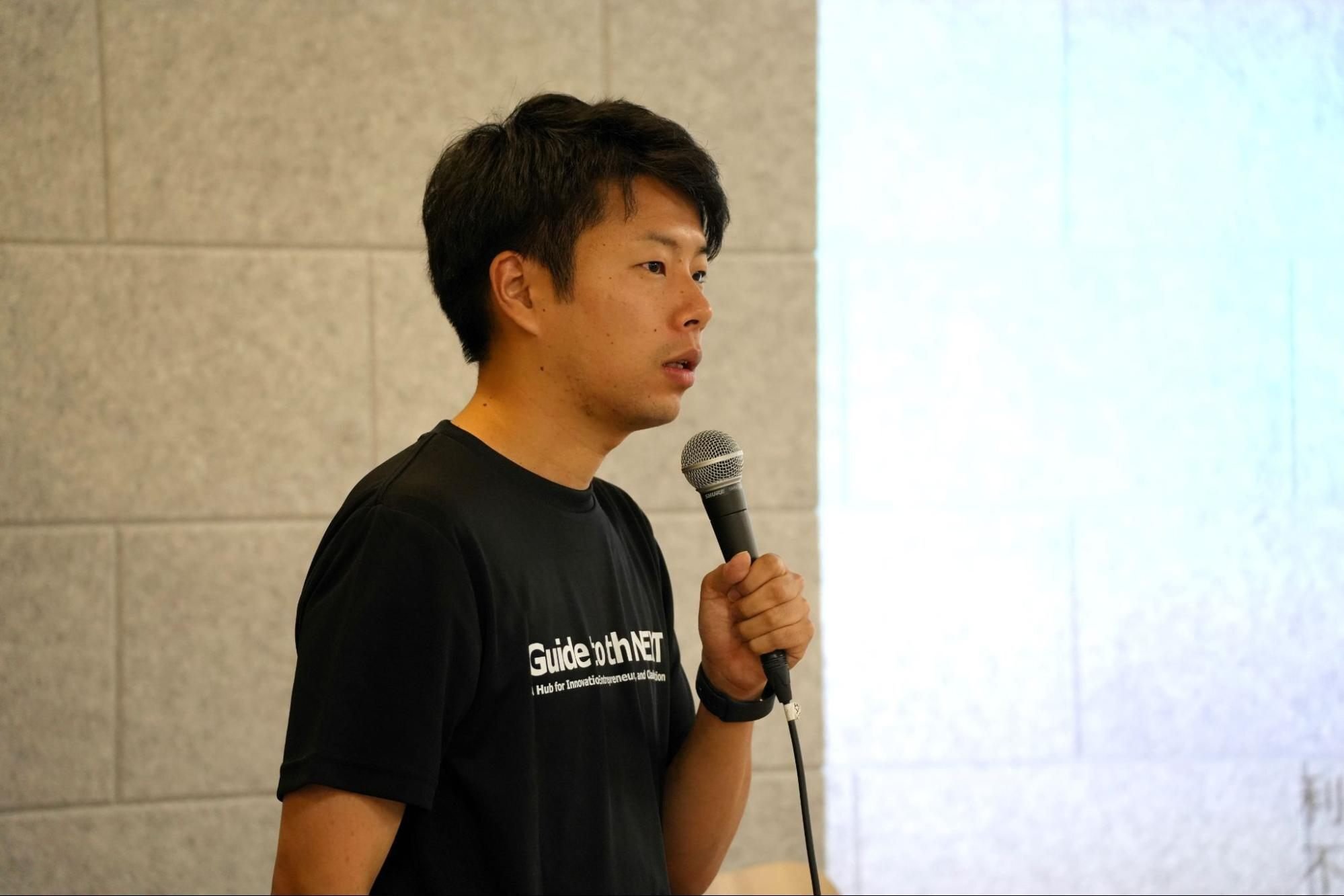 一人目は武蔵野大学アントレプレナーシップ学部の2年生で、株式会社Emer代表の板本大輝氏。かつてサッカーでプロを目指していた板本氏は、日本にプロの選手として活動できている人がほんの数パーセントしかいないという状況を目の当たりにします。多くの選手は日中の練習の前後に生活のためにアルバイトをするという過酷な生活を強いられています。そこで忙しい選手とサポーターをつなげるファンコミュニティをつくる会社を起業しました。選手はサービス内で日常を発信することで、ファンとのエンゲージメントを高め、キャシュポイントを作るのが事業の内容です。