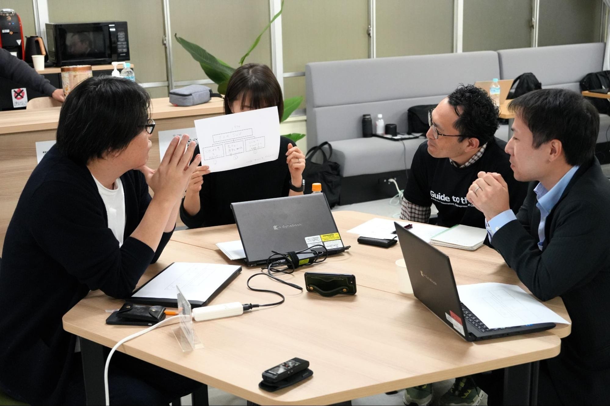 常石グループの参加者は12月上旬に開催される社内新規事業プログラムのデモデイに向けてチームごとにアイデアを練り上げています。ワークショップで学んだことを活かして当日は素晴らしいピッチができることが期待されます。