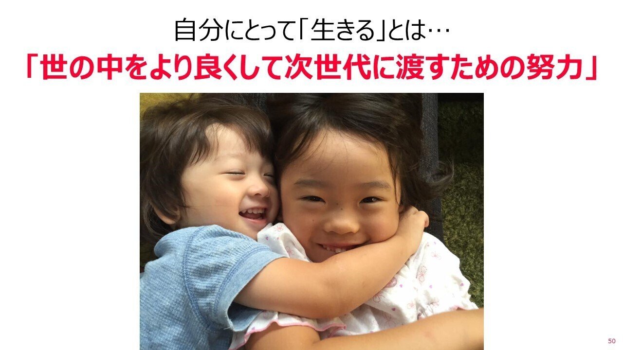 大学でローマ史について学んだとお話ししましたが、かつてローマでは教育が限られた人々にのみ与えられ、平等も人間の尊厳も軽んじられていた時代でした。しかし現代は違います。教育は普及し、身分制度はなくなり、世界は以前より良くなっています。これは、過去の人類が努力し、その成果を積み重ねたおかげです。娘が成長するにつれて、自分も歳を取り、いずれこの世を去る時に「自分も世の中を良くするために努力した」と胸を張って言えるかどうかを考え始めました。妻からは、子供の誕生によって自分がまるで別人のように変わったと言われています。この経験から、「世の中をより良くして次世代に渡すための努力」を自分の「生きる」ことの定義として決めました。その後、公務員として、従来の保守的な考え方から脱却し、能動的に生きることを心がけるようになりました。