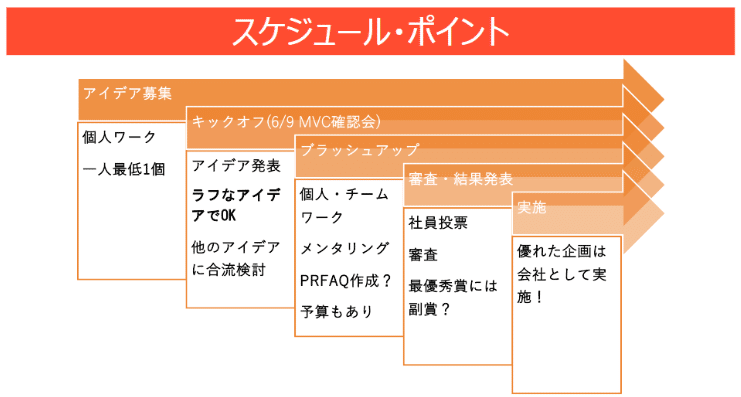 ・社内業務改善部門:1年以内に実現可能なアイデアで、一部の人だけに関係するものでも良く、既存のサービスを使う前提のものでも良い。