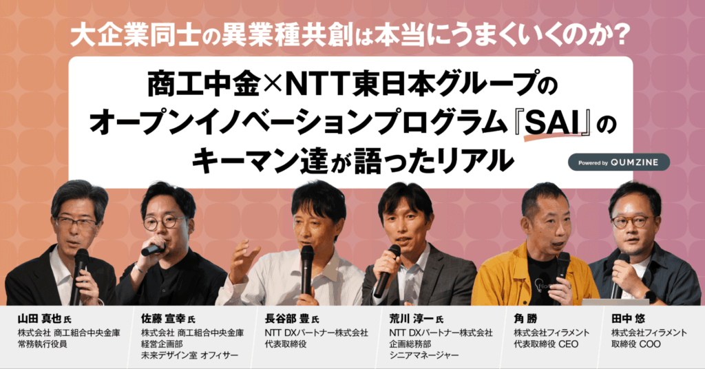 大企業同士の異業種共創は本当にうまくいくのか?商工中金×NTT東日本グループのオープンイノベーションプログラム『SAI』のキーマン達が語ったリアル