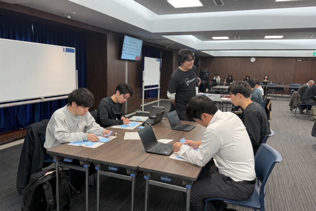 さらに、社会課題を「業界課題 → 顧客課題」へと段階的に分解し、各自が自分のテーマを深掘りする事前ワークにも取り組みました。