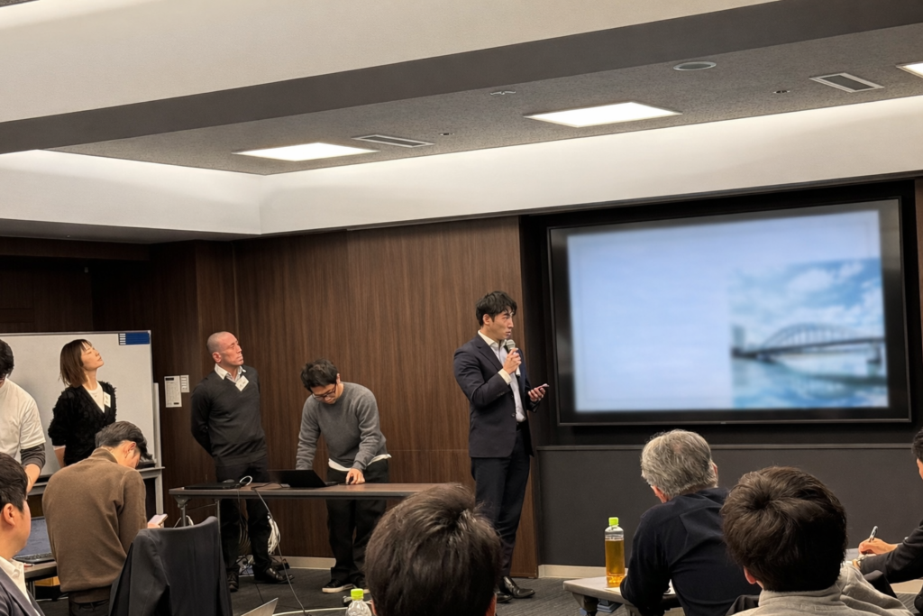 2024年度に続き、JFE HD傘下の「JFEエンジニアリング」「JFE商事」の2社合同で企画された「合宿型アイデアソン」。社会課題を起点にアイデアを広げ、企業内新規事業の構想からピッチまでを短期間で体験する実践型プログラムとして実施されています。